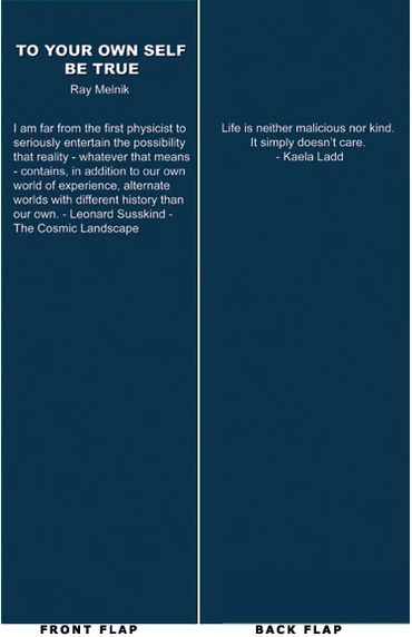The story in To Your Own Self Be True centers on the life of Kaela Ladd, whose father taught her to think first with reason, as he taught her younger sister, Lainey. He told his daughters to question everything, explaining that nothing can be learned, if they close their eyes. Lainey had no trouble accepting what others believe, but Kaela became almost obsessed about the absurdities advanced by others.